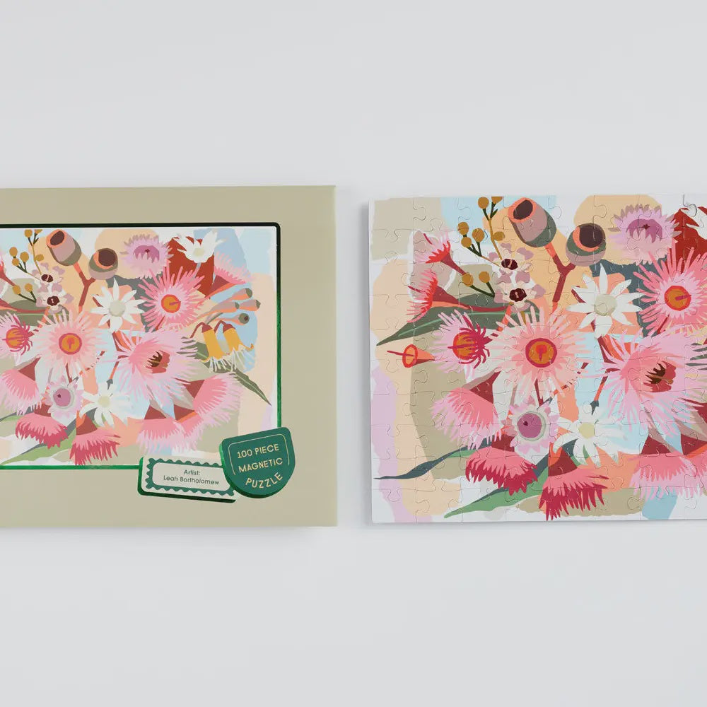 Keep this super cool, 100 piece magnet puzzle on your fridge or anywhere that holds magnets. Chip away at it every time you need a snack (and by snacks we mean wine). About the artist Leah Bartholomew’s artworks are an abstract representation of the beauty found in the landscape and life of her local environment. Her optimistic, colourful artworks are a response to her daily interactions with her local base, coolangatta, qld and northern nsw. If you love Leah's work see also our 1000 piece puzzle by Leah, it's good to be home. Additional info 29cm x 21cm (finished size of puzzle) Artist designed Brain training