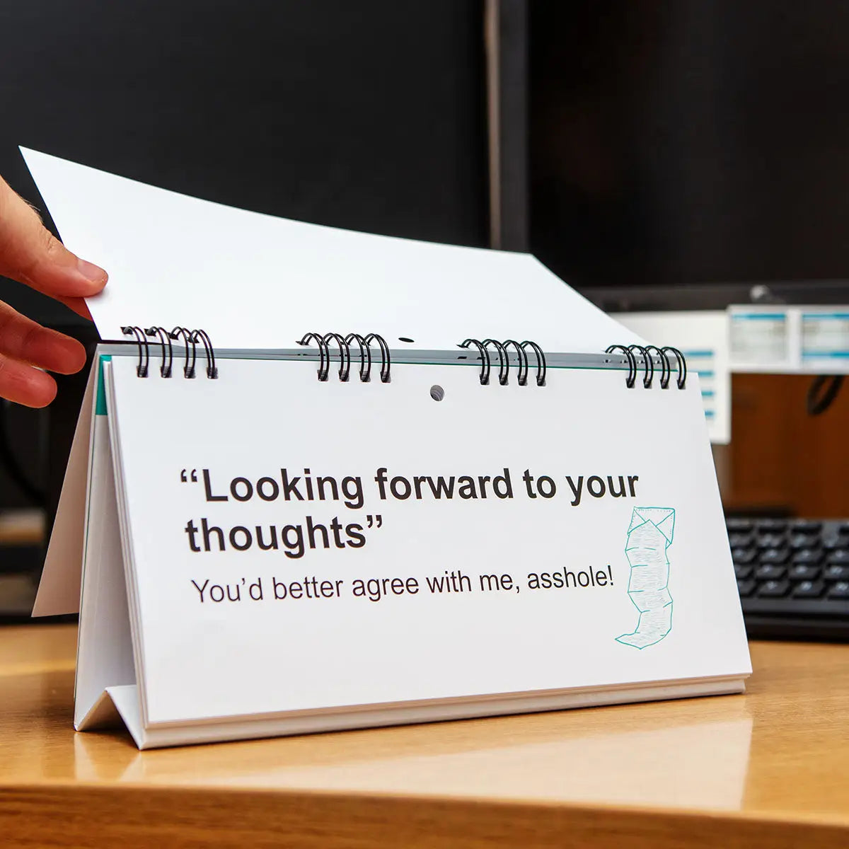 Do you find yourself signing off your professional emails with a "kind regards" or "all the best" when in reality you want to tell them to bug off and don't bother you again? With this hilarious novelty flip book, you can add some excitement and office humour to your working day as you translate your "polite" emails into what you really mean! With a handy pull out stand included, you can take pride in letting your colleagues know how to take your emails, by turning this book into a sign and placing this fun office themed gift on your desk! With 50 pages of cheeky, funny and sarcastic translations, this flip-book makes the perfect gift for a colleague or friend on their Birthday, Promotion, or as a Secret Santa at Christmas!