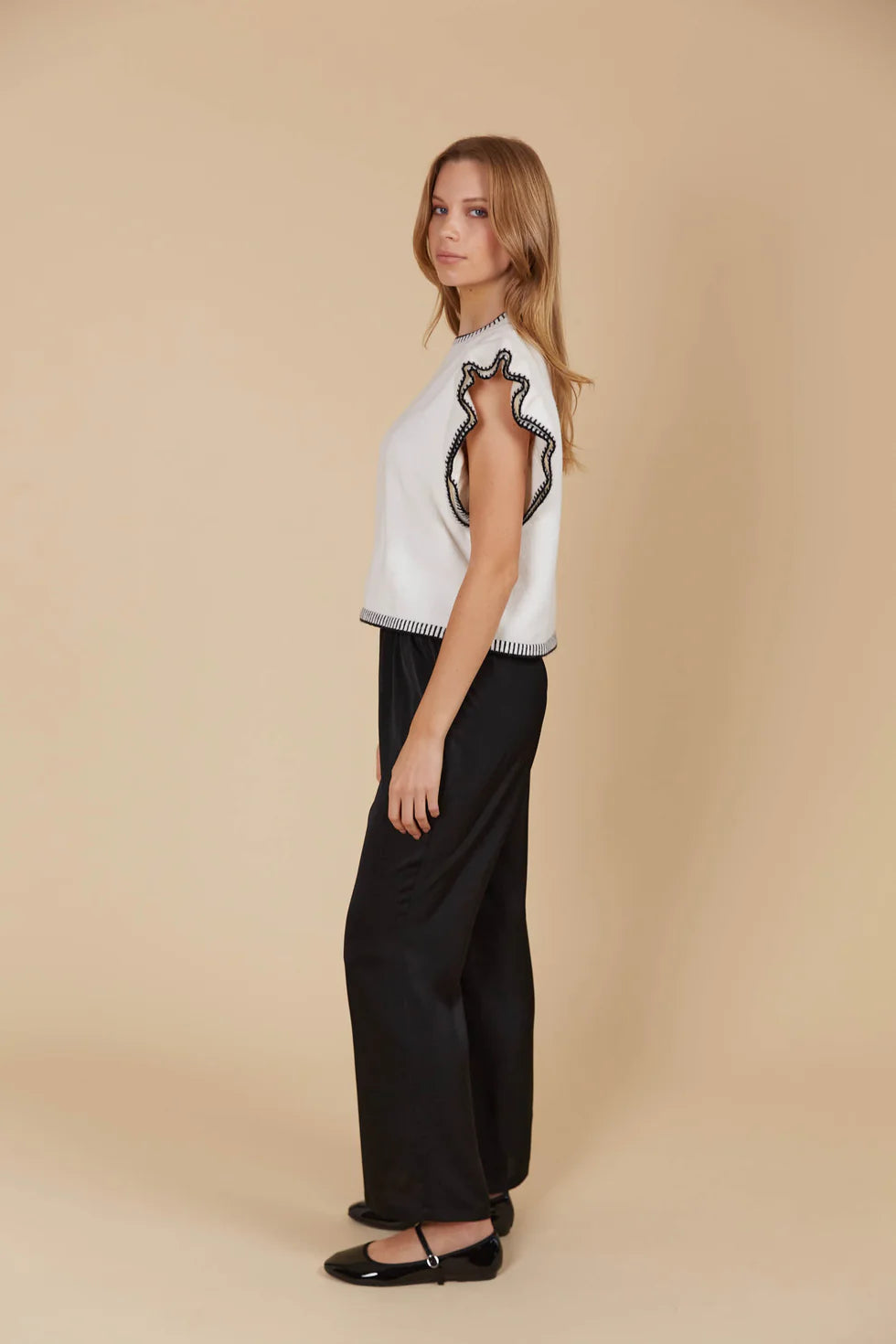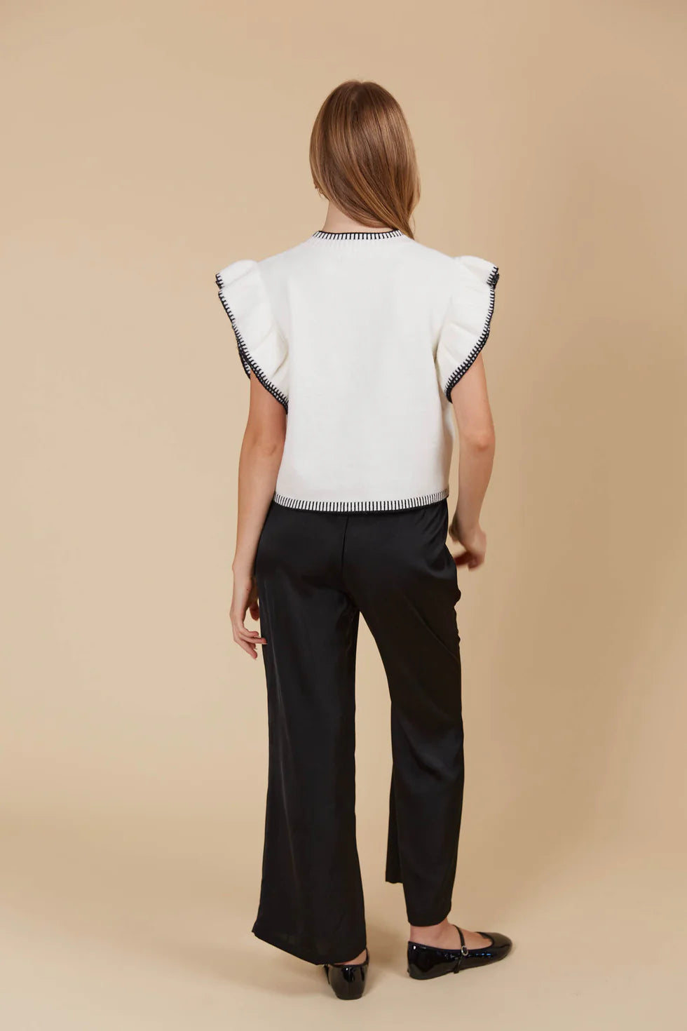 Just add jeans, and you're good to go! The Athena Frill Knit Top steals the spotlight with its dramatic frill sleeves and eye-catching contrast binding. Designed with a slightly cropped length, it's the perfect match for high-waisted bottoms, adding a stylish edge to your outfit. Crafted from a cosy wool and recycled blend, this knit top is a must-have for your transeasonal wardrobe. Trust us—you'll want one in every colour!