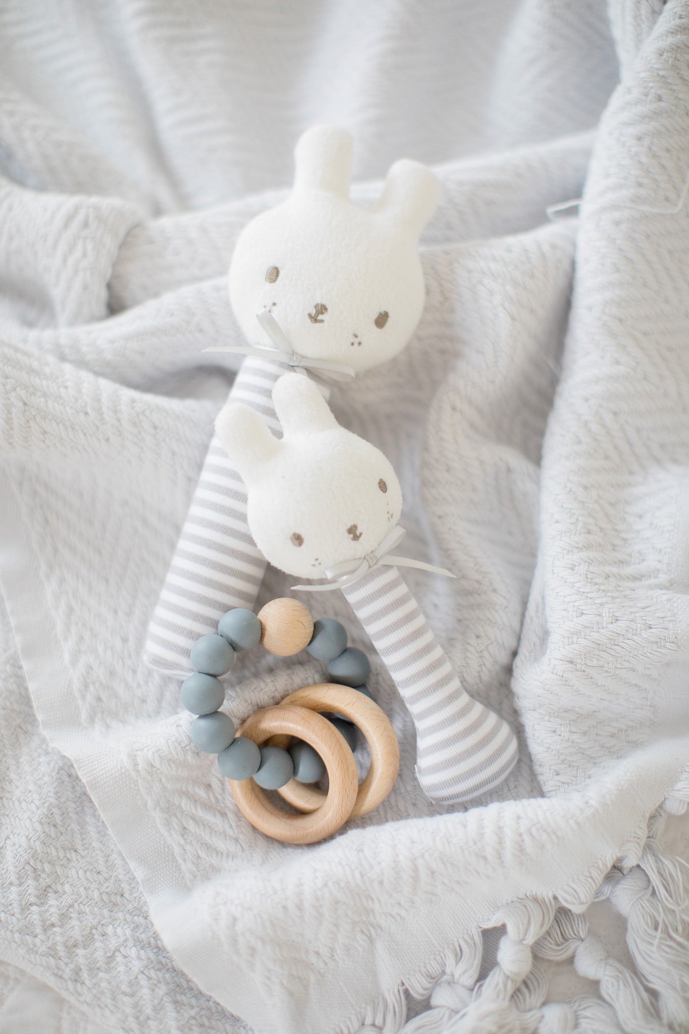 Baby Bunny Stick Rattle Grey