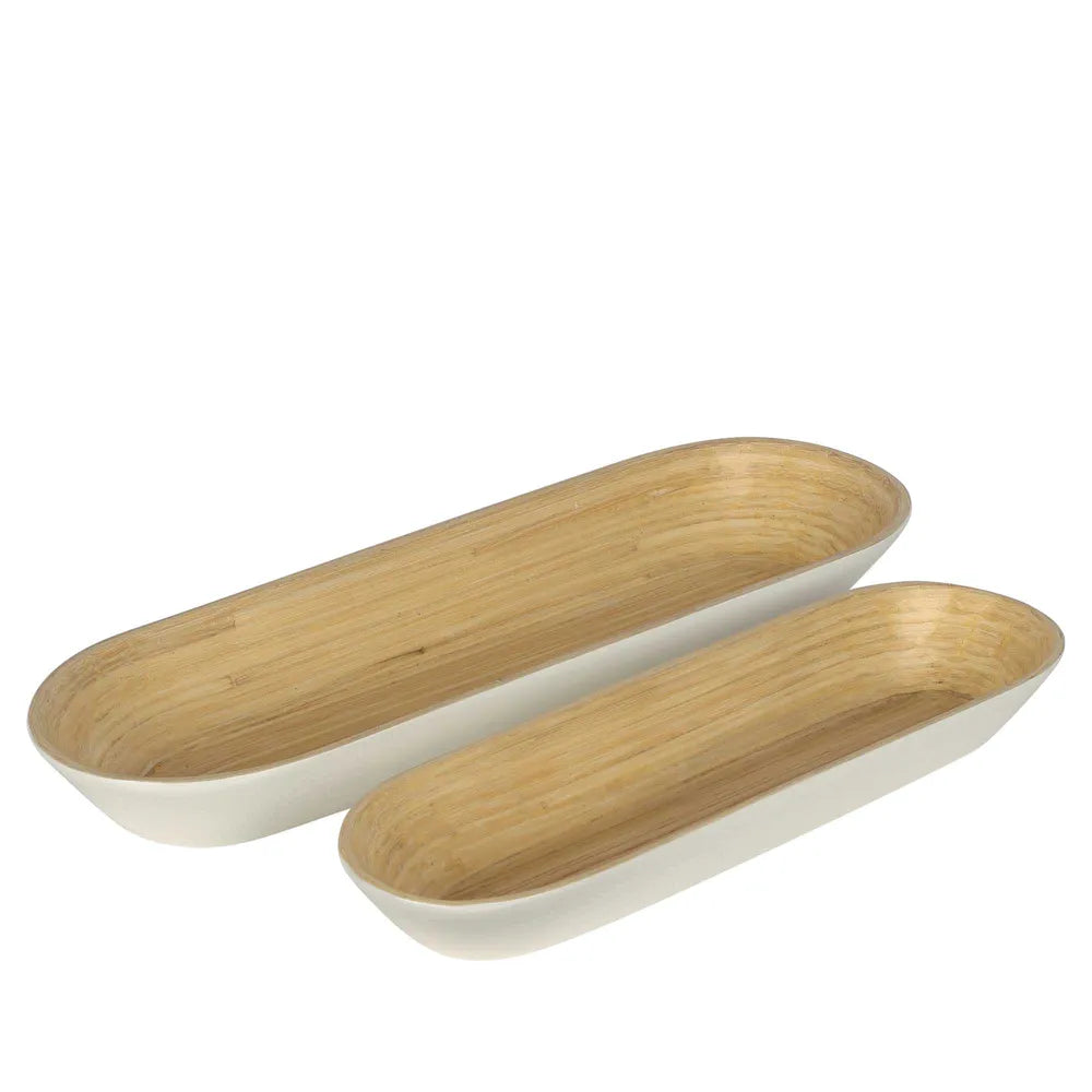 Our Blana Bamboo Platter features a smooth, flat surface with a warm and natural finish on the inside and painted finish on the outside. The bamboo's grain patterns and earthy tones add a touch of elegance, making it perfect for casual settings inside and out.