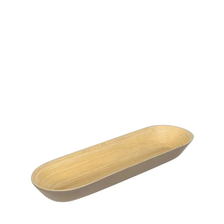 Our Blana Bamboo Platter features a smooth, flat surface with a warm and natural finish on the inside and painted finish on the outside. The bamboo's grain patterns and earthy tones add a touch of elegance, making it perfect for casual settings inside and out.