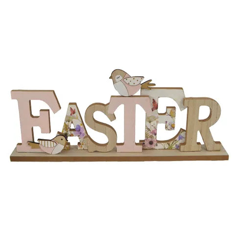 Fun and colourful wooden easter sign. Perfect for any table decoration.
