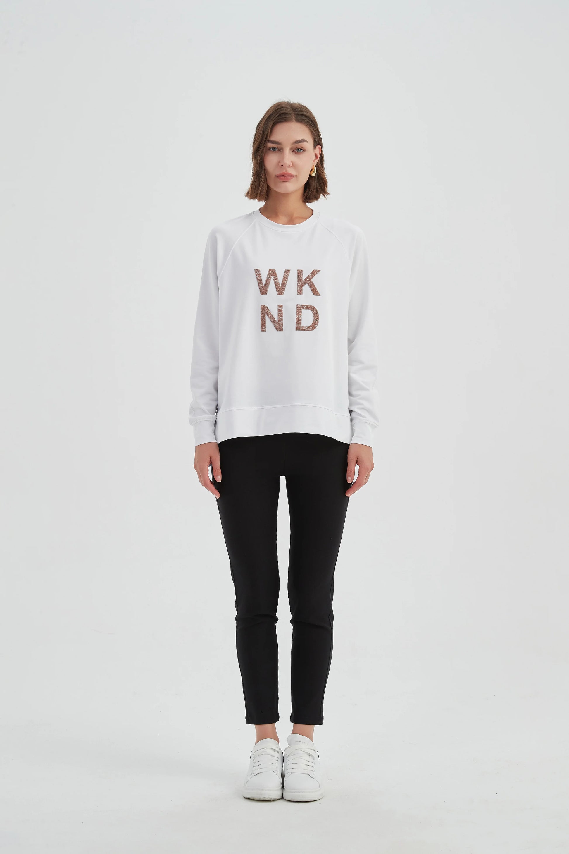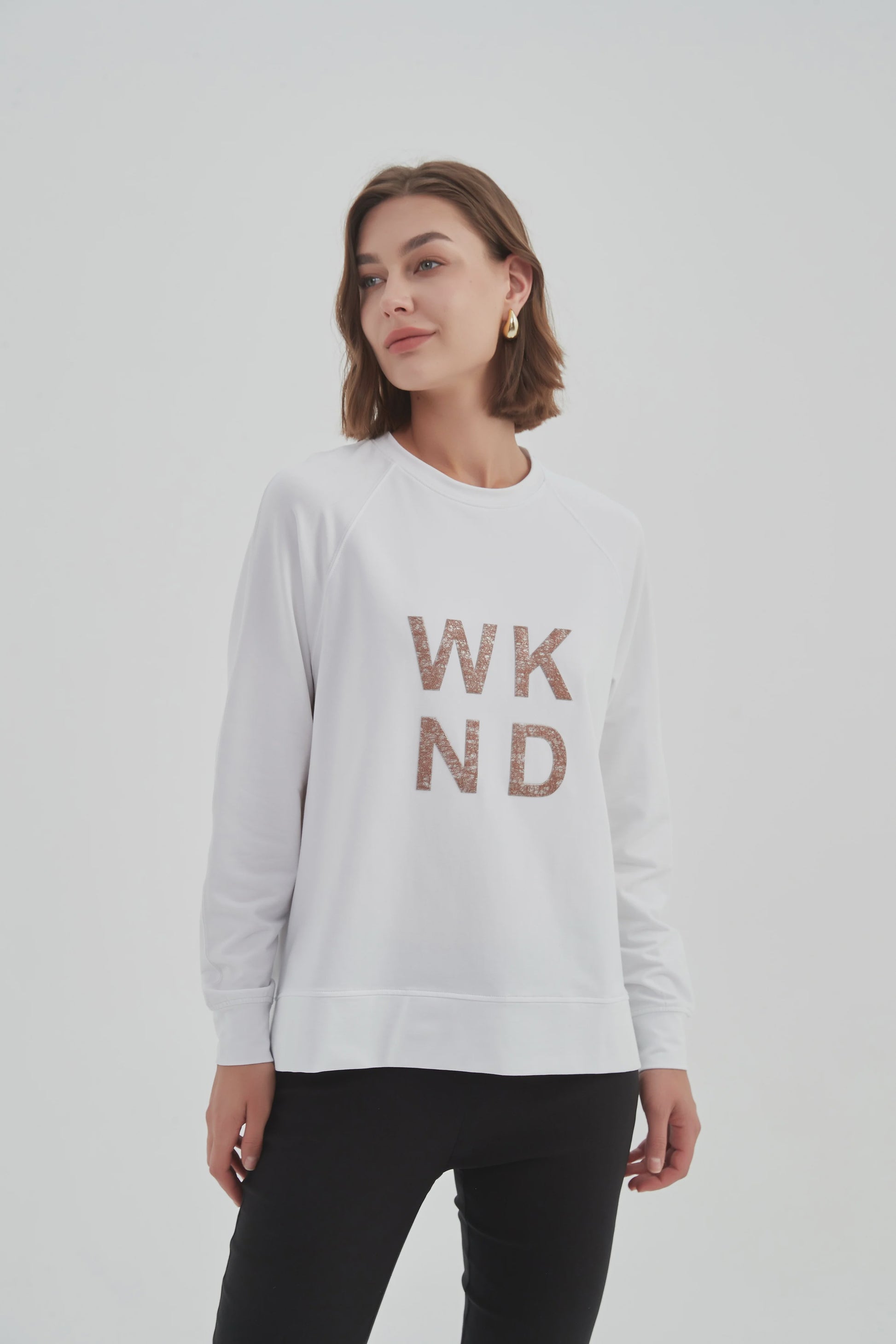 EMBOSSED METALLIC WKND SWEAT (WHITE & ROSE GOLD)