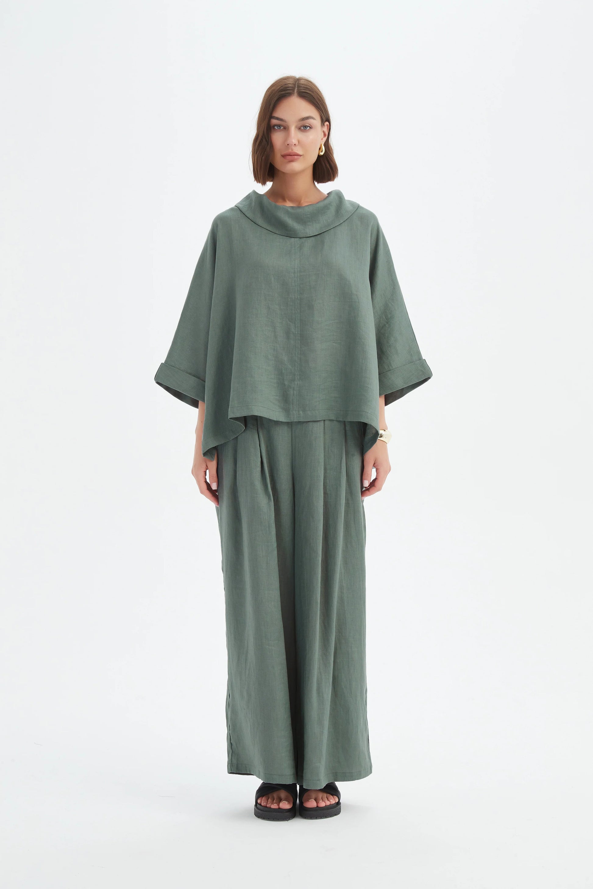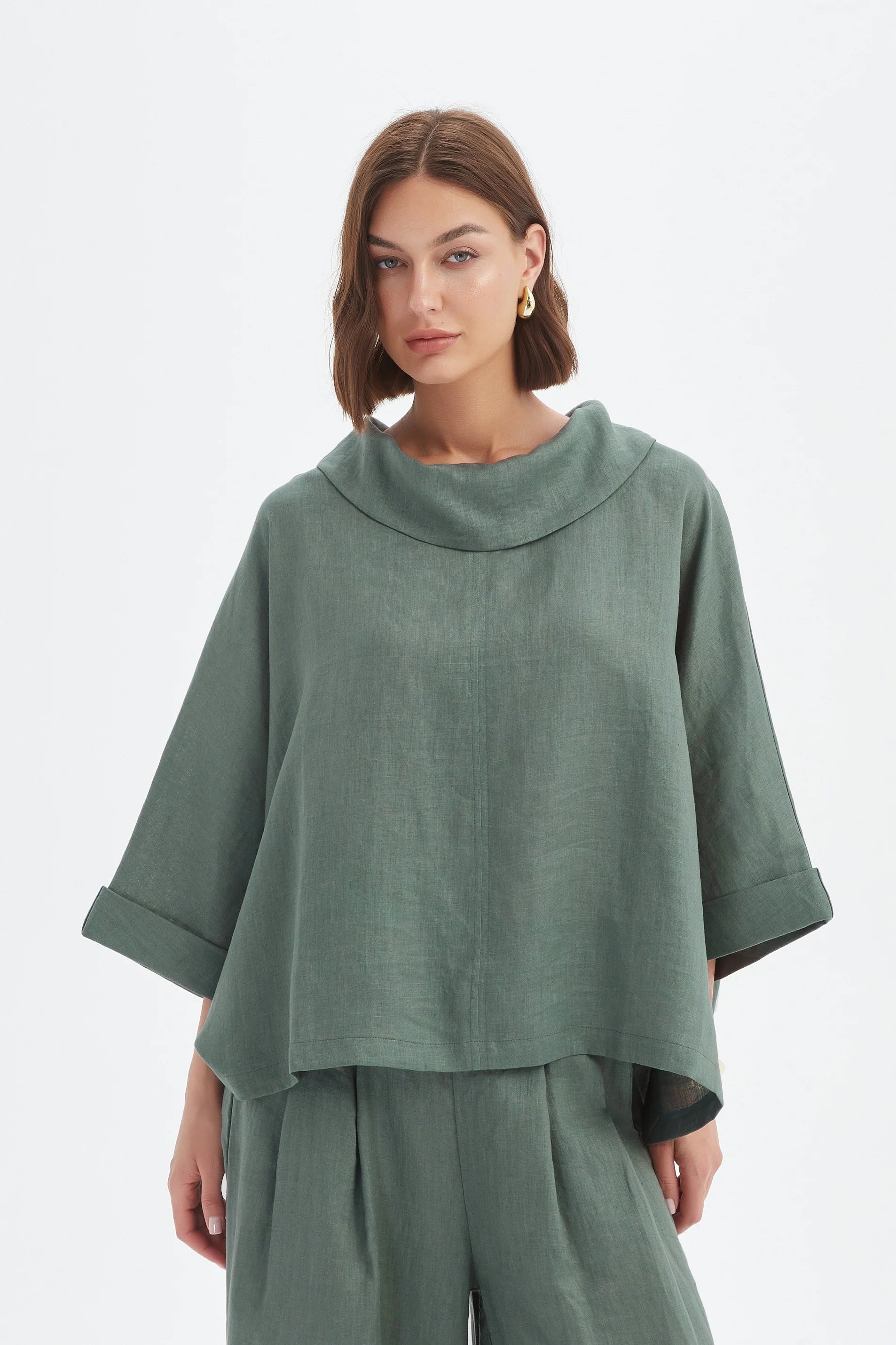 The Funnel Neck Boxy Top combines effortless style with comfort. Designed with a relaxed funnel neck, this top features a contemporary boxy shape and flattering 3/4 sleeves with rolled arm cuffs. The subtle side splits and batwing silhouette create a laid-back yet elevated feel, making it the perfect addition to your wardrobe for easy, everyday styling.