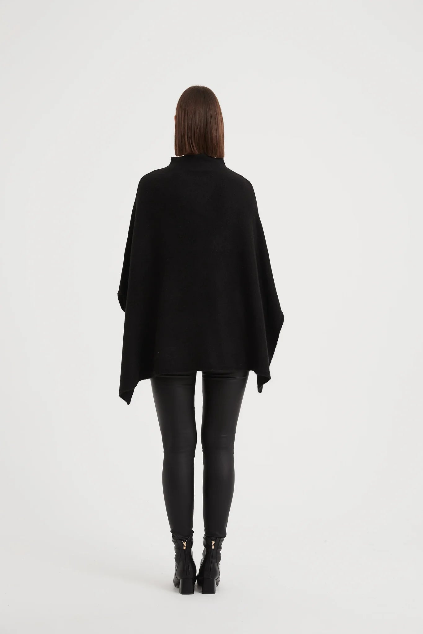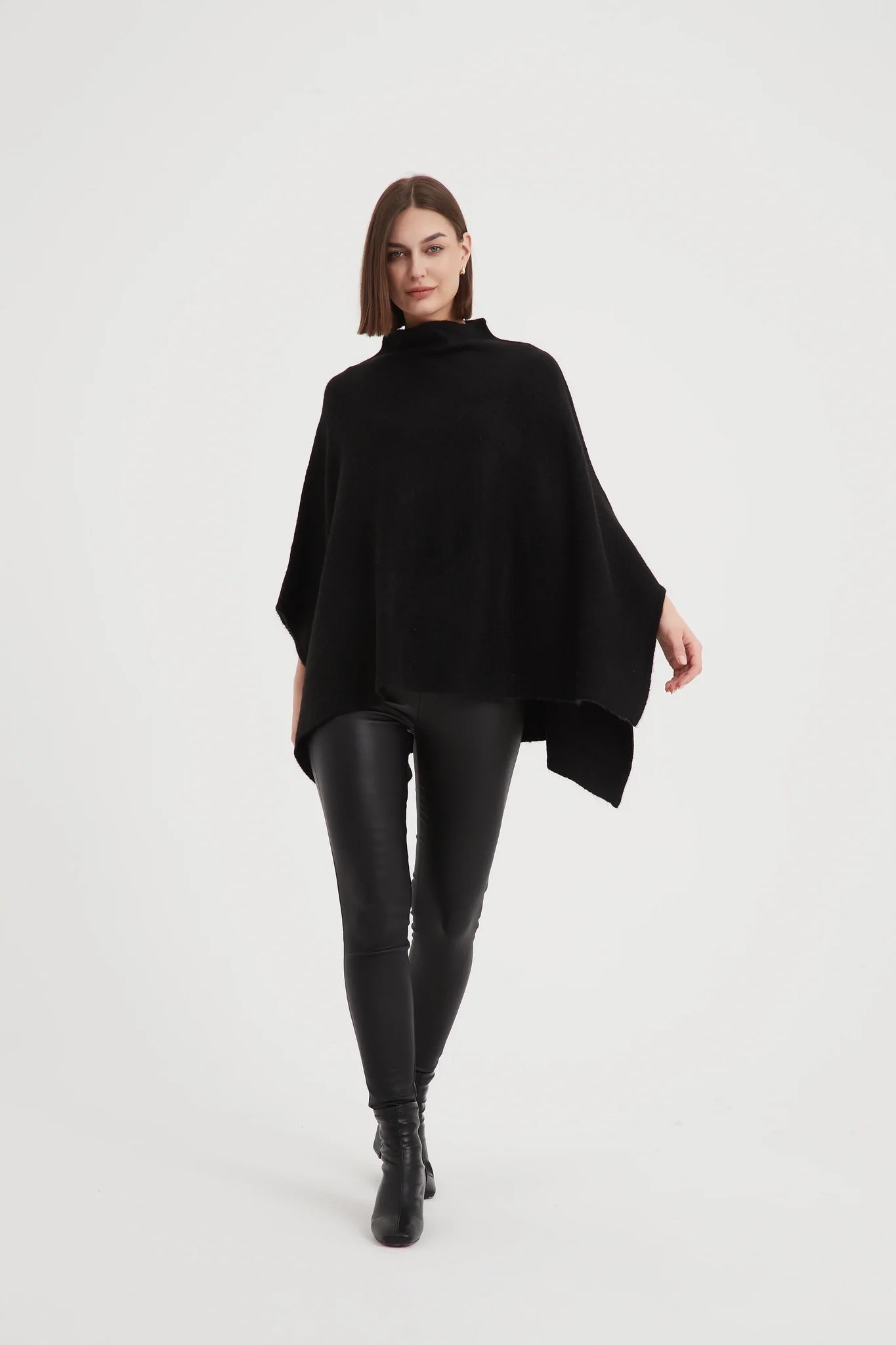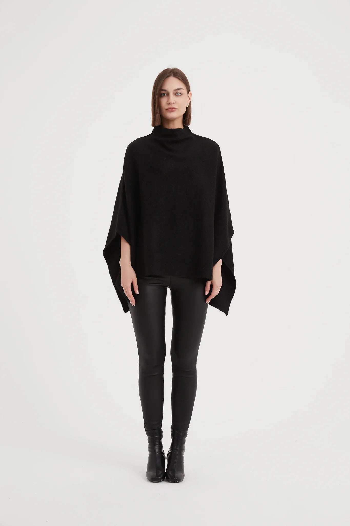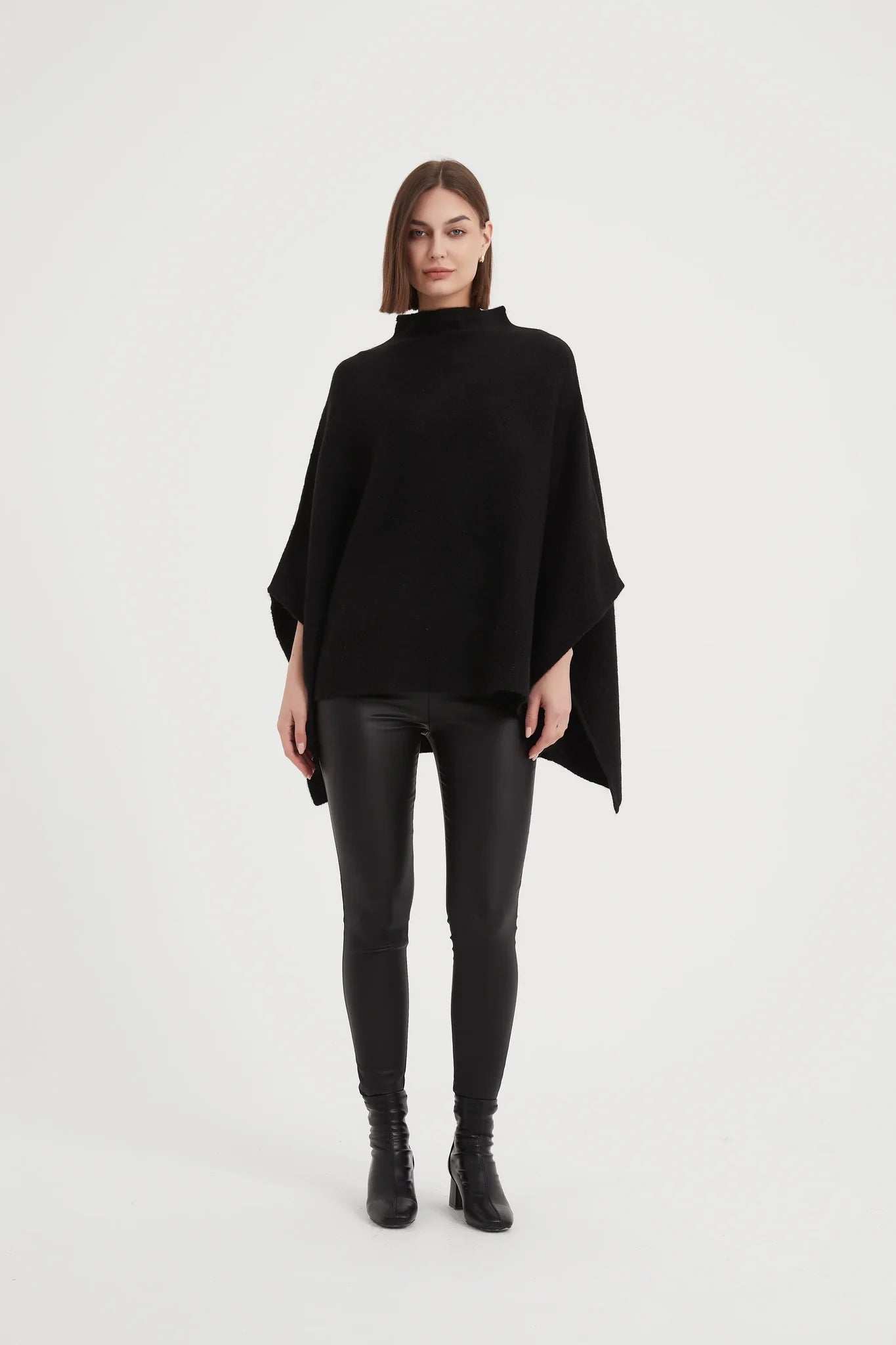 Simple, minimal and modern. The Funnel Neck Shawl is designed to be worn as an outer layer. This comfy style is made in a poncho like fit, with open arm holes and a high neck. Crafted from our new recycled polyester yarn.