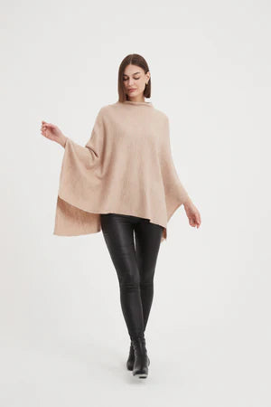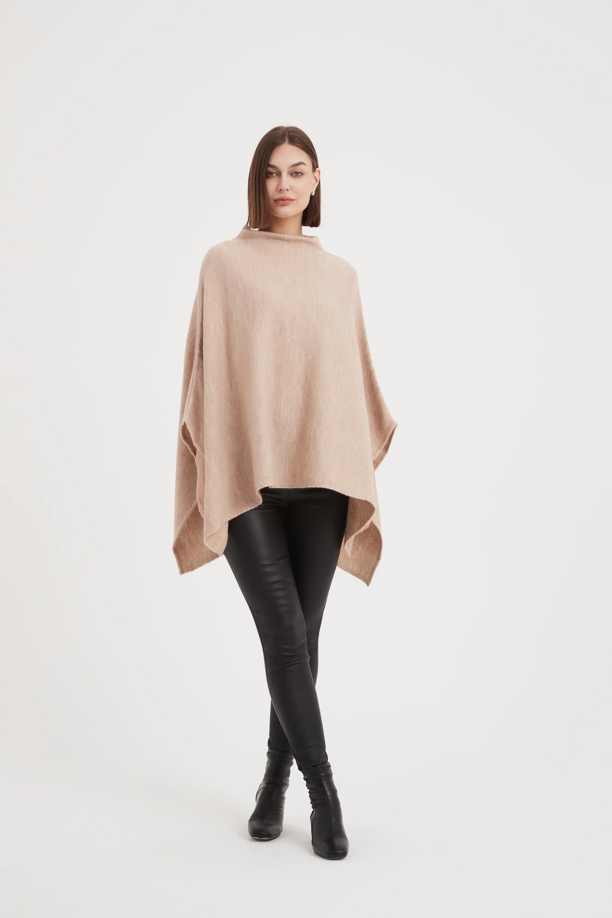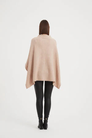 Simple, minimal and modern. The Funnel Neck Shawl is designed to be worn as an outer layer. This comfy style is made in a poncho like fit, with open arm holes and a high neck. Crafted from our new recycled polyester yarn.
