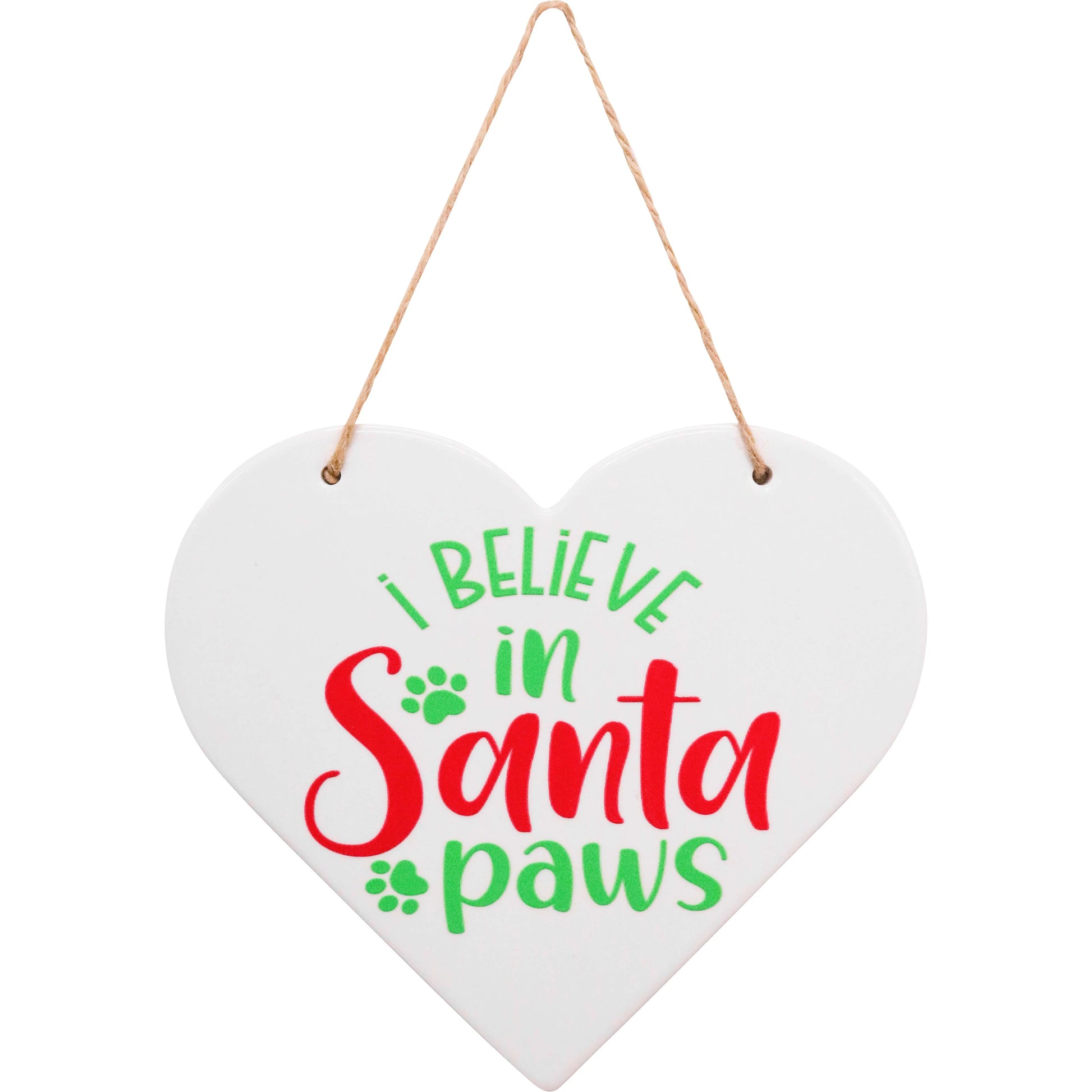 Delight your customers with the Heart Santa Paws, a charming ceramic decoration that's perfect for pet lovers. Measuring 22x19.5cm with an added hanger for easy display, this heart-shaped ornament features vibrant red and green lettering, making it a festive addition to any home. Its unique theme will appeal to all animal enthusiasts and add a whimsical touch to holiday decor,