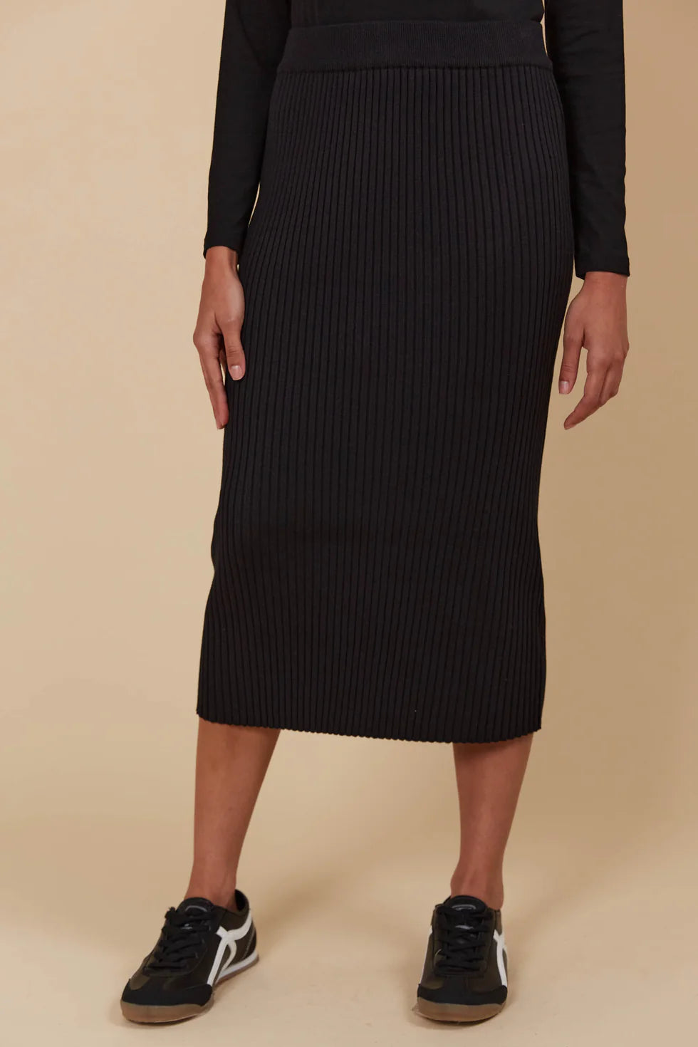 Ditch the pants and opt for the stylish Juno Knit Skirt! Crafted in a rib knit fabric, this sleek, semi-fitted design flatters with a streamlined silhouette and a mid-calf length. The elastic waistband ensures a comfortable fit, while its versatile design pairs beautifully with a coordinating top, a tailored blouse, or a soft knit. The Juno Knit Skirt is the perfect blend of comfort and sophistication.