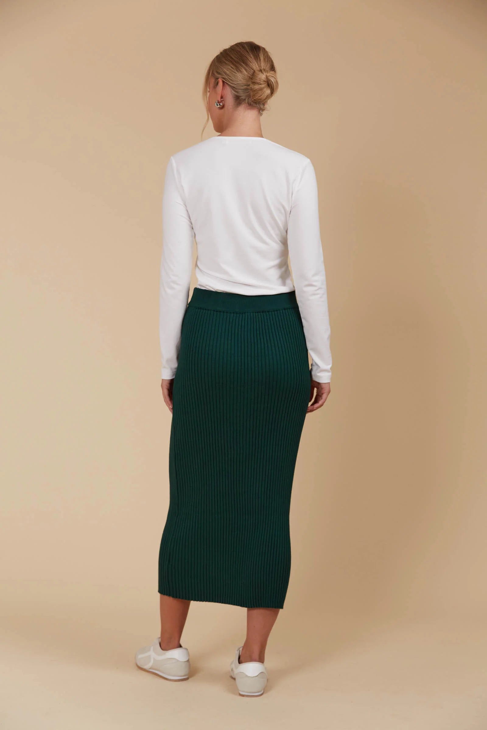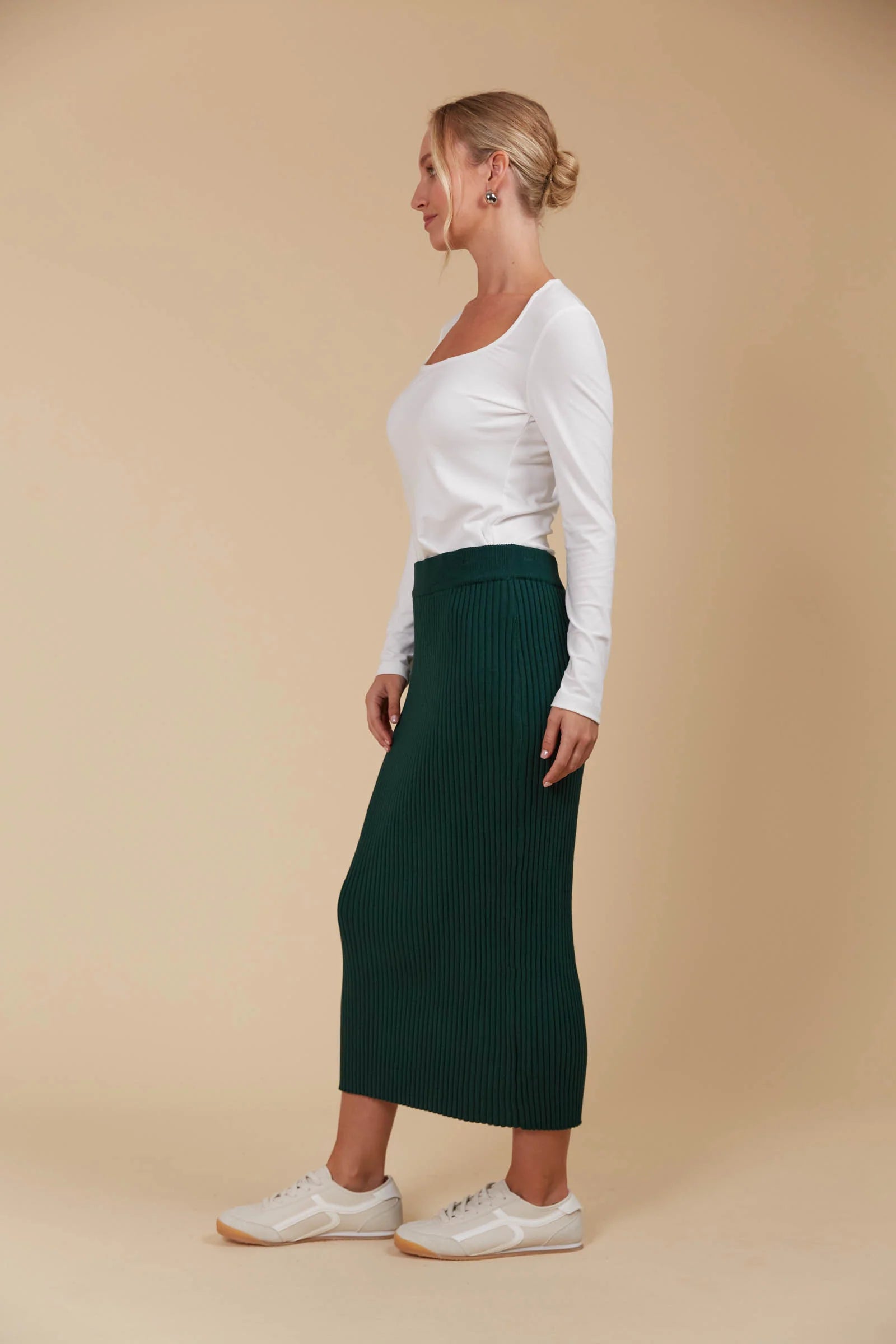 Ditch the pants and opt for the stylish Juno Knit Skirt! Crafted in a rib knit fabric, this sleek, semi-fitted design flatters with a streamlined silhouette and a mid-calf length. The elastic waistband ensures a comfortable fit, while its versatile design pairs beautifully with a coordinating top, a tailored blouse, or a soft knit. The Juno Knit Skirt is the perfect blend of comfort and sophistication.