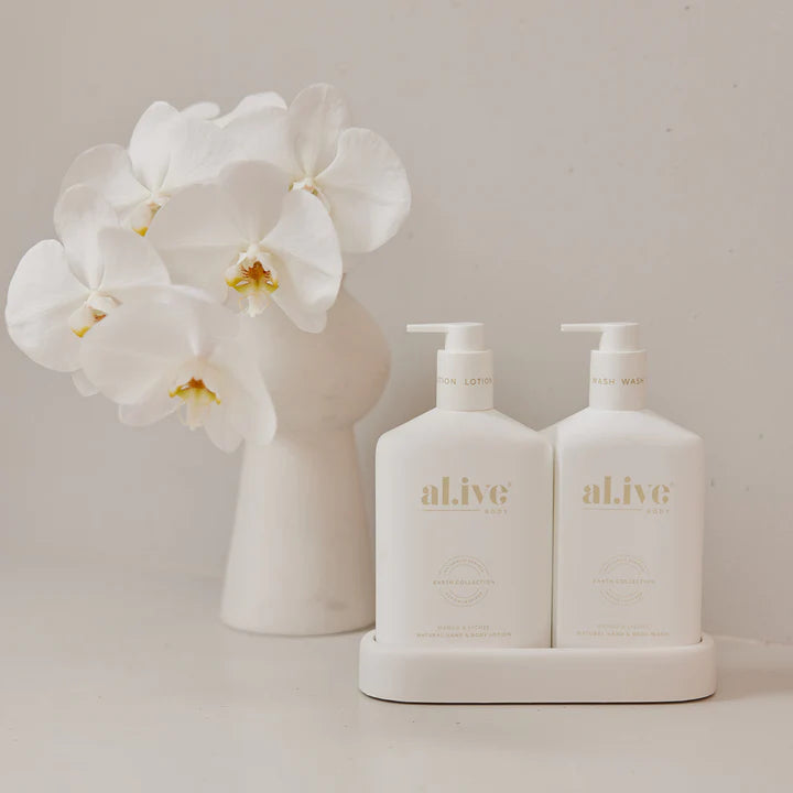 The al.ive body Mango & Lychee Hand & Body Wash/Lotion Duo contains a luxurious blend of naturally derived ingredients, fortified with essential oils and native botanical extracts.