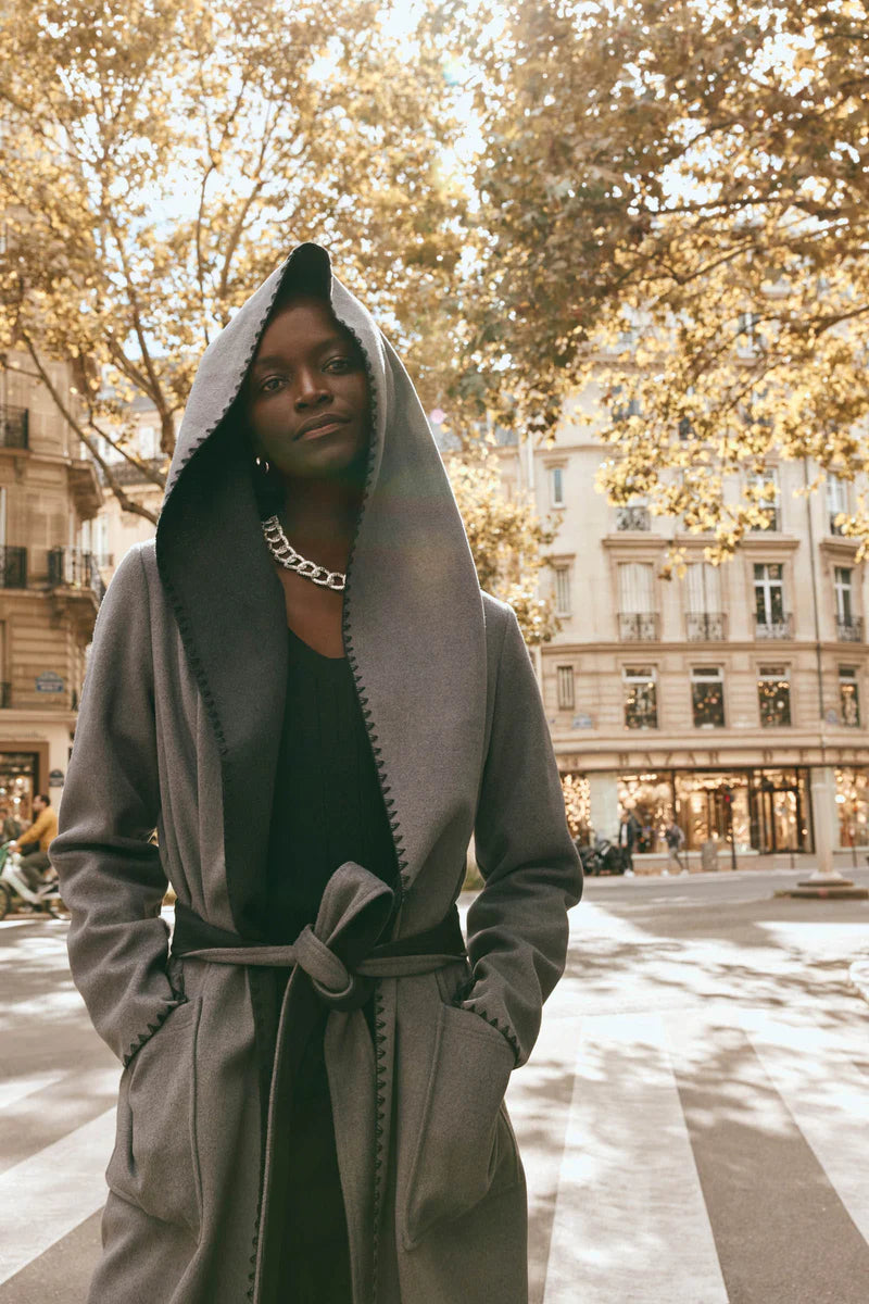 The Manta Coat reimagines the timeless winter coat with a fresh, modern aesthetic. Its open-front design and detachable self-fabric belt offer customisable styling options and allow you to personalise the fit. With a hood and oversized patch pockets, it's as functional as it is stylish. The playful contrast stitching adds a unique touch, making this long-line coat perfect for winter layering, keeping you snug and warm all season.