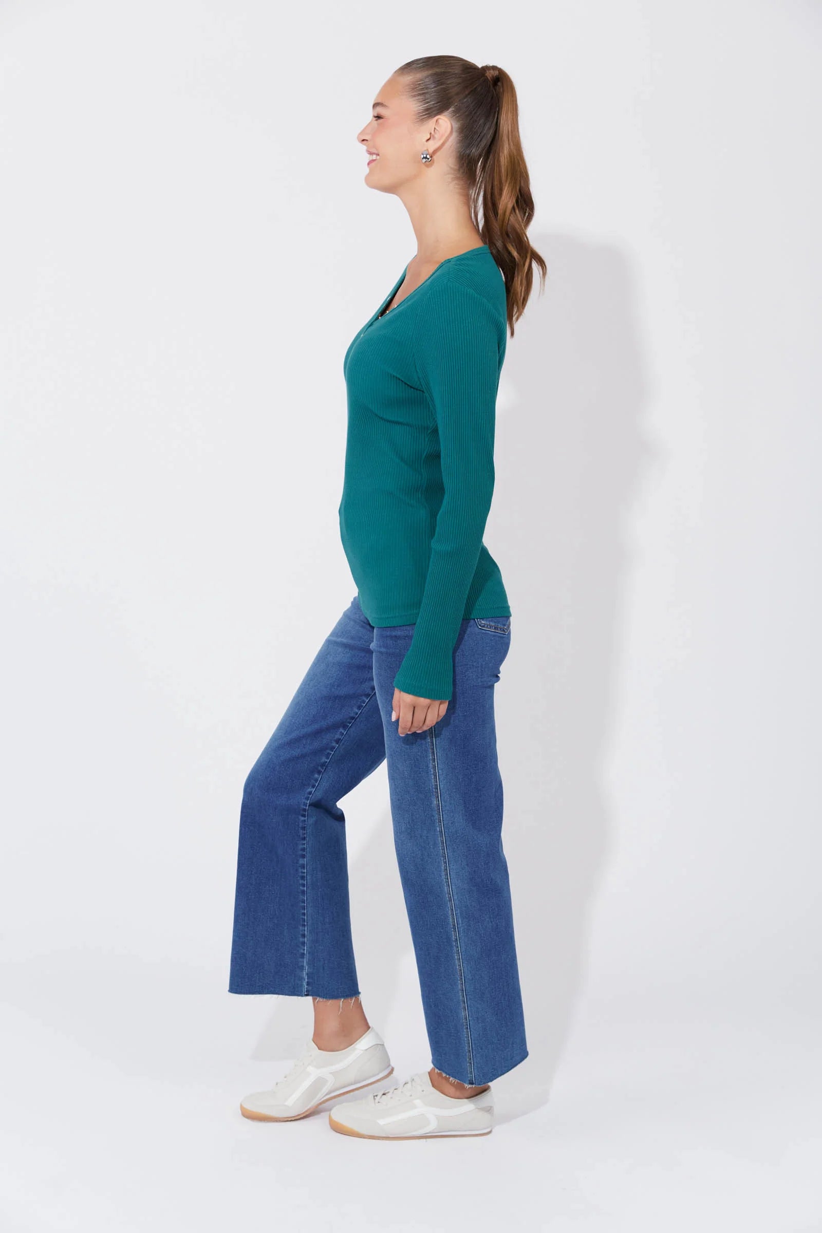 Upgrade your everyday style with the Nevada Top. Made from a soft and stretchy cotton rib blend, this long-sleeve top features a wide V-neck with a popover placket for a polished touch. The fitted design flatters your figure while remaining comfortable, making it a fantastic base layer for layered outfits. Ideal for busy days, pair it with a puffer jacket, leggings, and your favourite sneakers for a chic, on-the-go look.