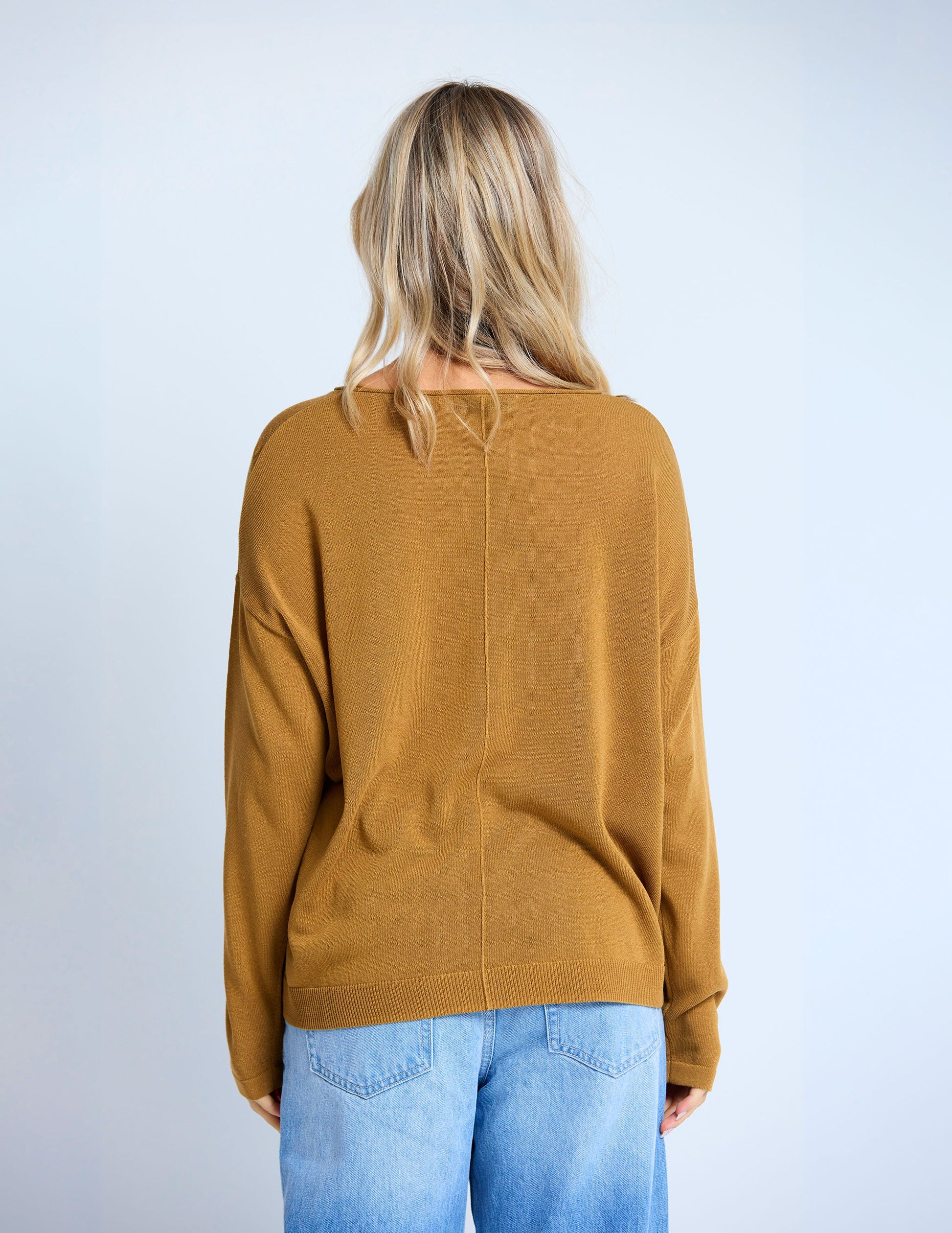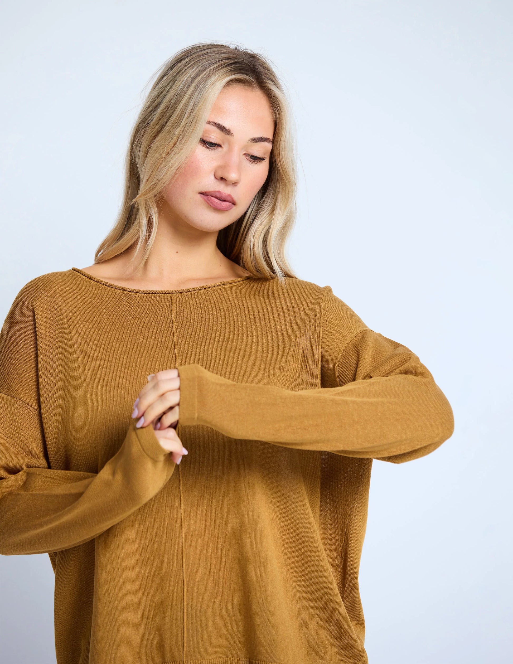 A lightweight crew-neck knit featuring a centre front seam and a rolled neck edge. An easy, versatile piece for everyday layering.