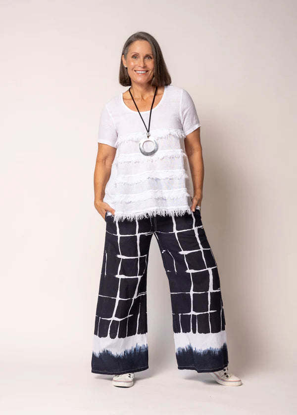Relaxed, breathable, and effortlessly stylish — this 100% linen tee is a summer must-have. Designed with soft, frayed tiered layers and short sleeves, it offers that perfect mix of texture and flow. The raw-edged detailing gives it a modern, lived-in feel, while the loose fit keeps things cool and comfortable.