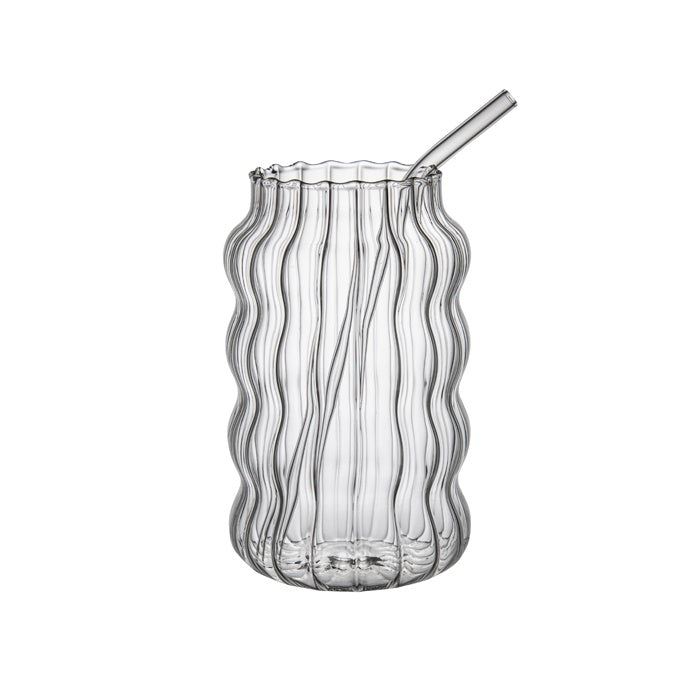 PUNCH RIBBED GLASS CUP WITH STRAW LARGE