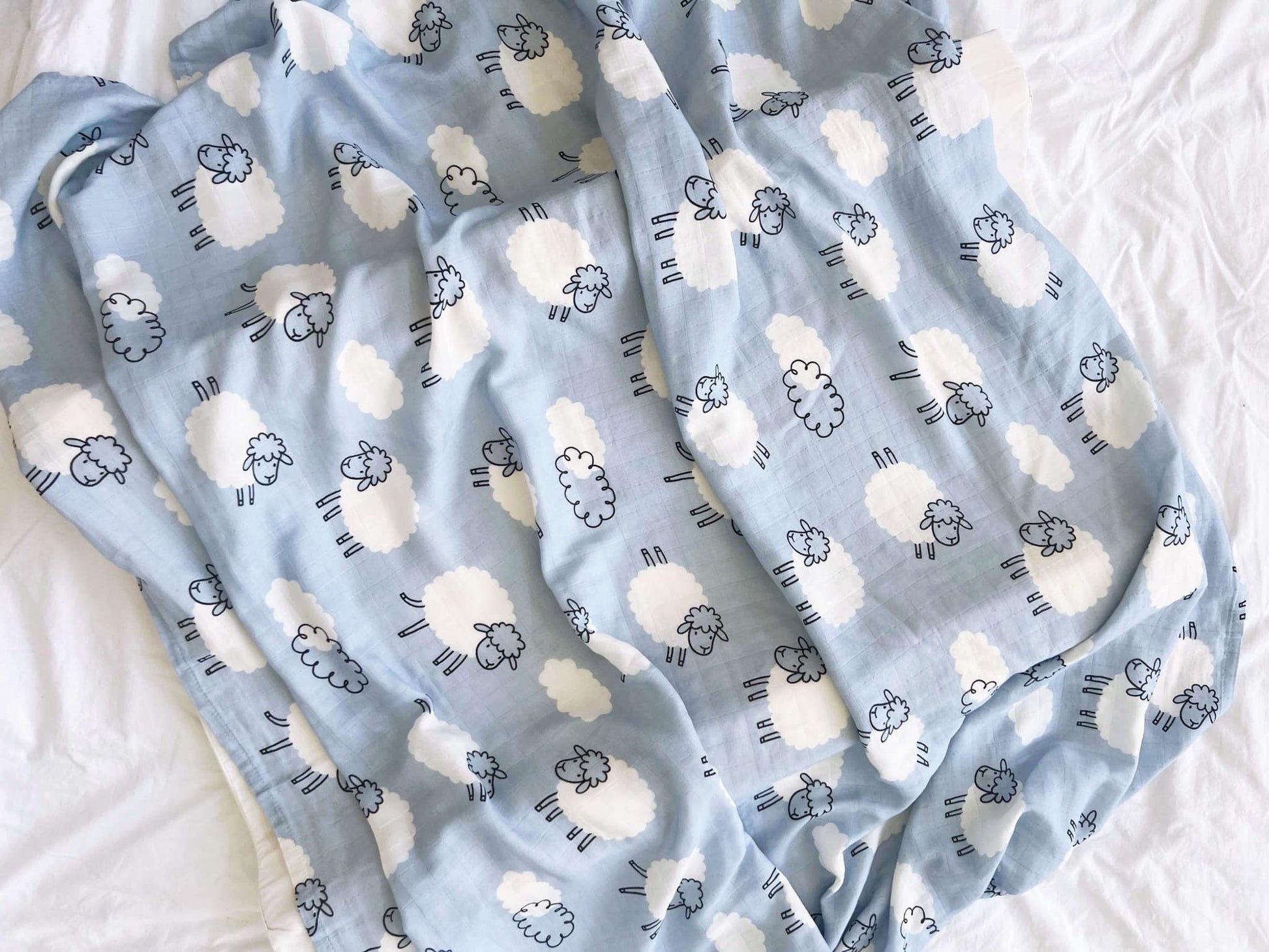 Sammy the Blue Sheep Muslin Wrap Swaddle