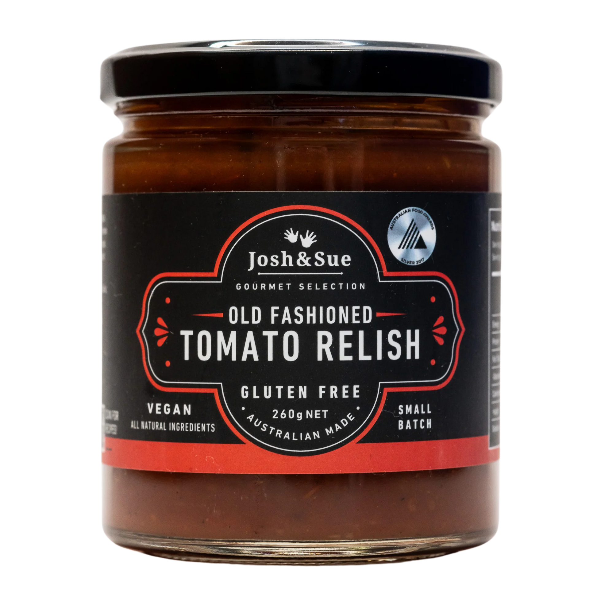 Old Fashioned Tomato Relish won a Silver medal at the Australian Food Awards 2017. Not only is it delicious it is the best selling Relish. Serve with hot and cold meats, on fritters, or simply with your favourite cracker. Or be like Josh&Sue add it to everything!