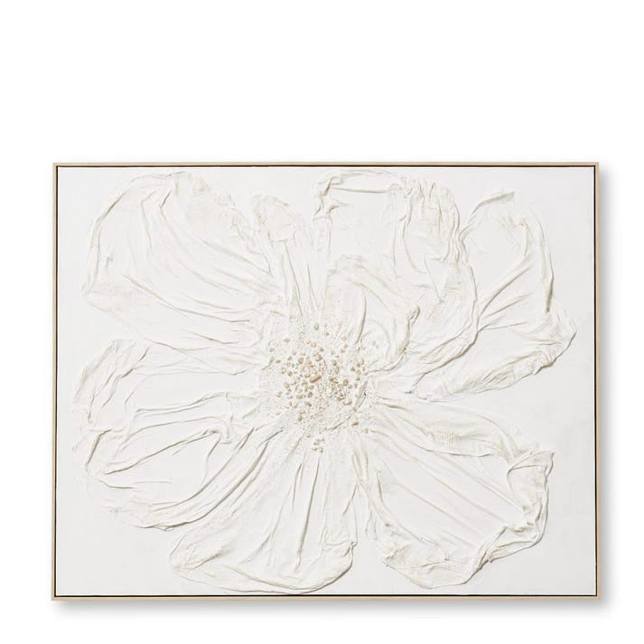 White Poppy Hand Painted Wall Art - 80 x 5 x 100cm