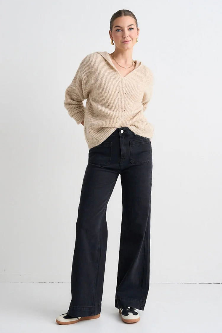 Introducing the Zoey Jean, your new best friend for effortless style. This wide leg jean, features a flattering hise rise waist and uniquely designed front pockets that add a touch of sophistication to your look.